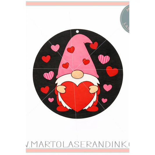 Valentine Gnome Round # 001 Wood Laser Blank | DIY Craft Cutout | Paint-Ready